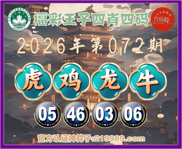 072期:《福彩王子》 🏅四肖四码🏅【虎龙牛】【05.46.03.06】开:鸡46