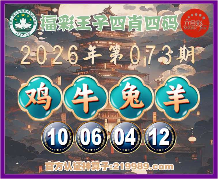073期:《福彩王子》 🏅四肖四码🏅【牛兔羊】【10.06.04.12】开:鸡34