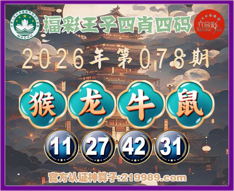 078期:《福彩王子》 🏅四肖四码🏅【猴龙牛鼠】【11.27.42.31】开:00准