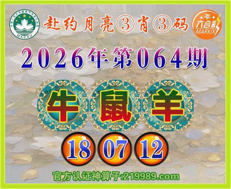 064期:《赴约月亮》 ⛩️③肖③码⛩️【鼠羊】【18.07.12】开:牛18
