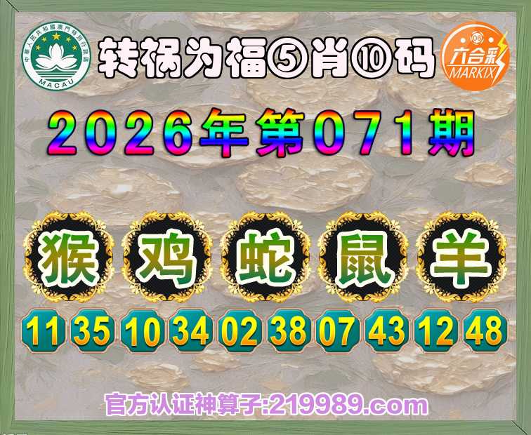 071期:『转祸为福』 🥽⑤肖⑩码🥽【猴鸡蛇鼠】开:羊48