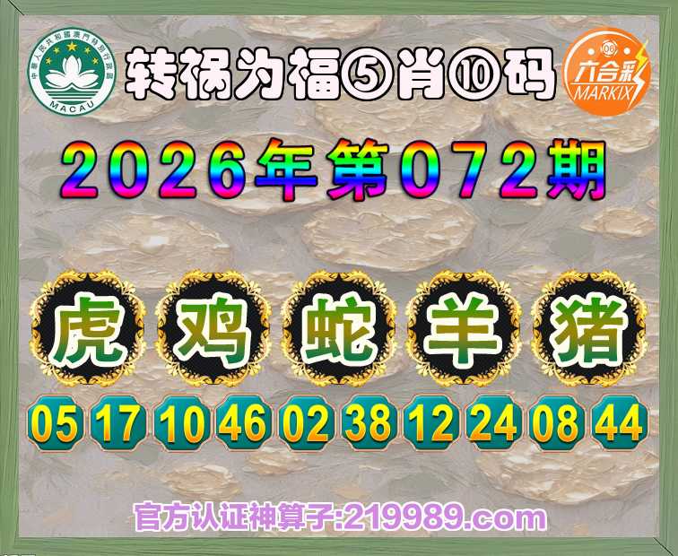 072期:『转祸为福』 🥽⑤肖⑩码🥽【虎蛇羊猪】开:鸡46
