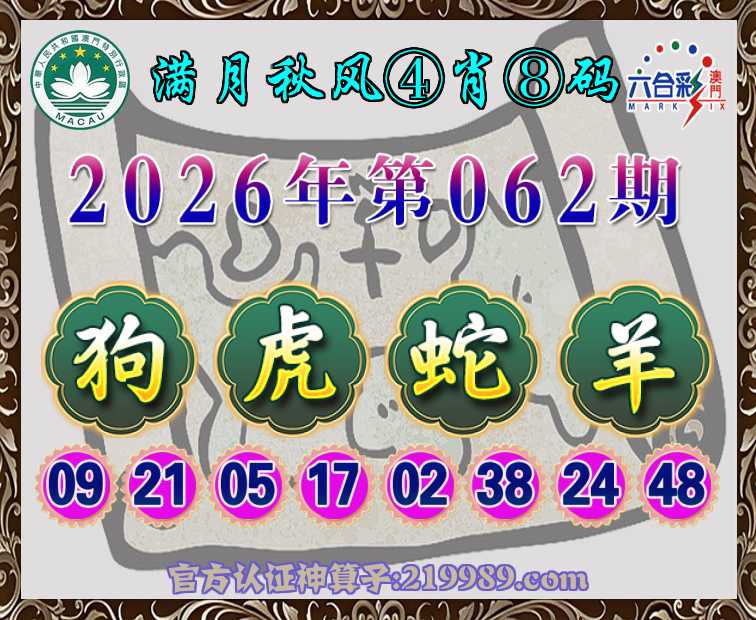 062期:『满月秋风』 ♦️④肖⑧码♦️【狗虎蛇】开:羊24