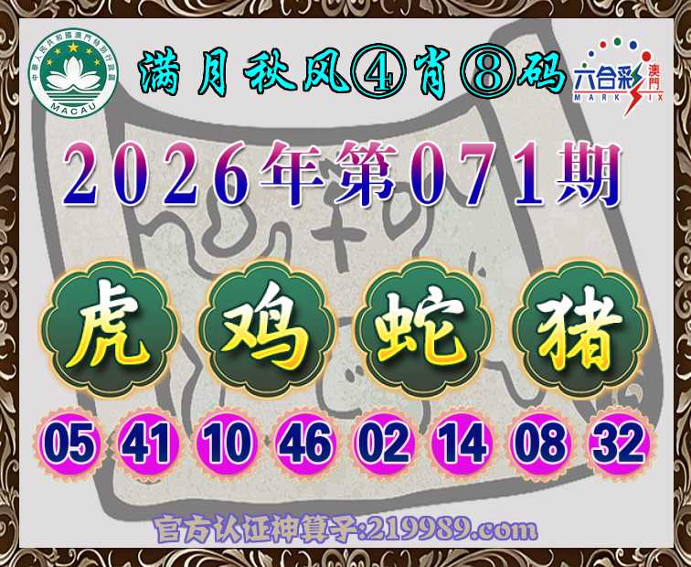 071期:『满月秋风』 ♦️④肖⑧码♦️【虎鸡蛇猪】开:羊48