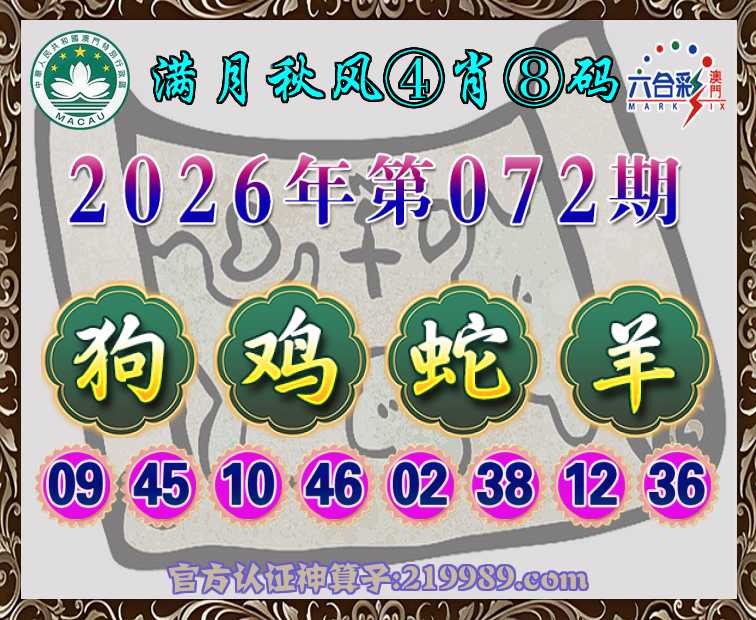 072期:『满月秋风』 ♦️④肖⑧码♦️【狗蛇羊】开:鸡46