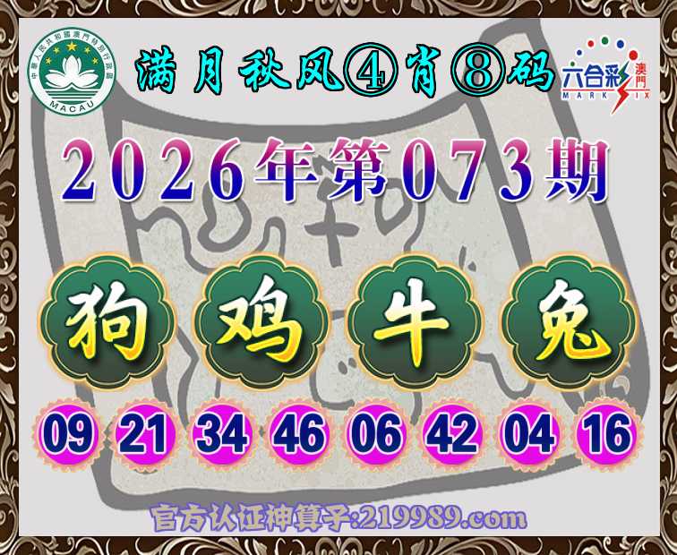 073期:『满月秋风』 ♦️④肖⑧码♦️【狗牛兔】开:鸡34
