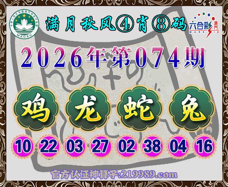 074期:『满月秋风』 ♦️④肖⑧码♦️【龙蛇兔】开:鸡10